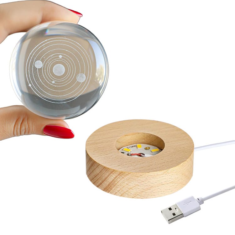 Küre cam malzemeden, stand ahşap malzemeden üretilmiştir.