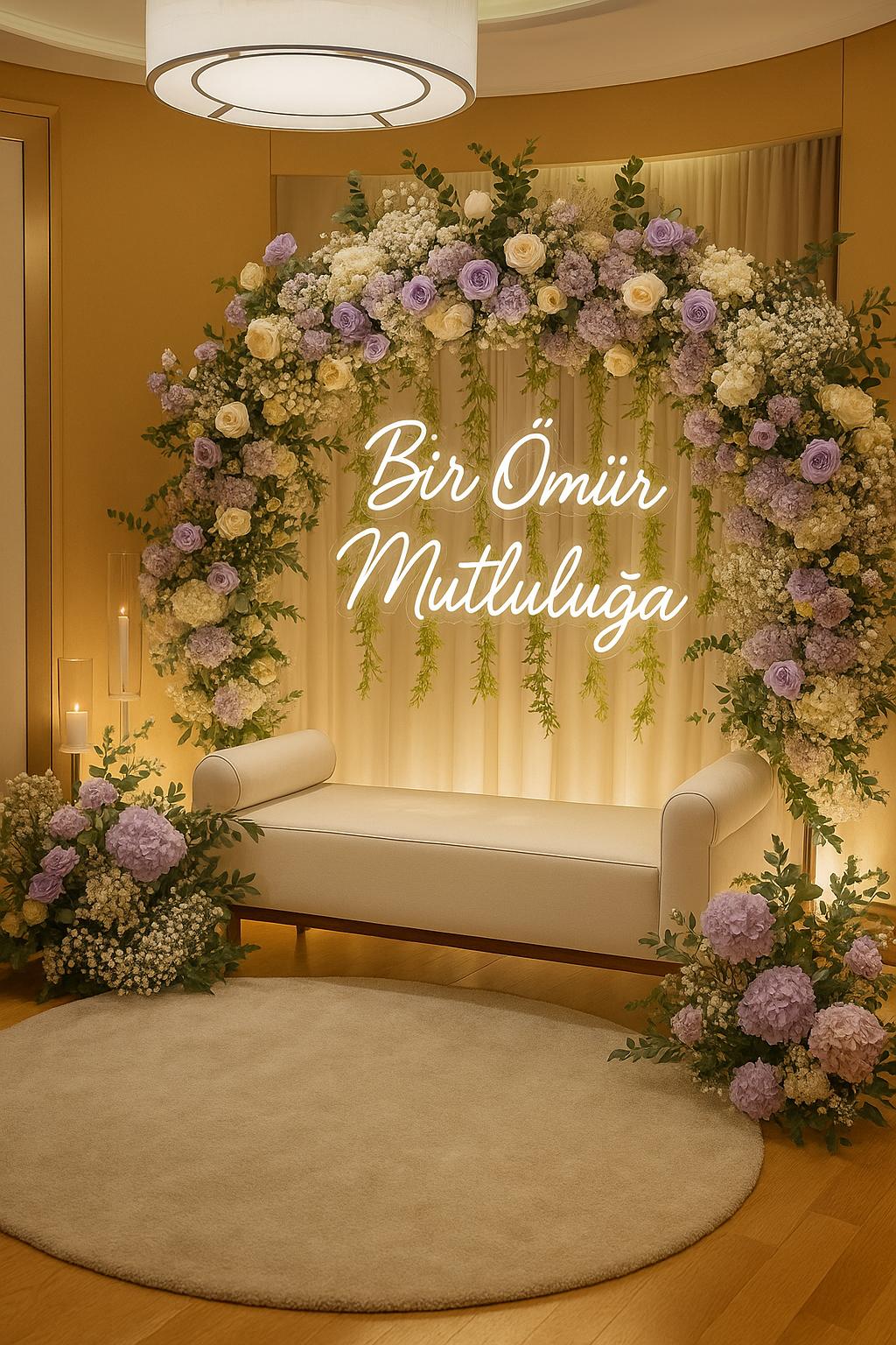 Evliliğe atılan en özel adımı ölümsüzleştirin! “Bir Ömür Mutluluğa” yazılı bu zarif neon tabela, söz, nişan ve düğün organizasyonlarınıza romantik ve modern bir dokunuş katıyor. Gün ışığı rengindeki sıcak beyaz tonlarıyla her mekâna uyum sağlayan bu tabela, hem göz alıcı bir dekor hem de unutulmaz anlarınızın fonu olacak.