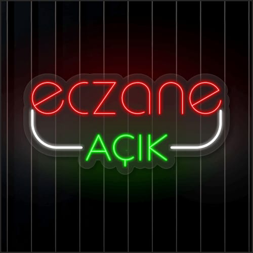 ECZANE AÇIK Neon Tabela 40×30 cm, eczaneler ve sağlık kuruluşları için özel olarak tasarlanmış, yüksek görünürlüğe sahip bir ışıklı tabeladır. Büyük ve okunaklı yazısı sayesinde gece ve gündüz rahatça fark edilir, müşterilerin eczanenizi hızlıca bulmasına yardımcı olur.