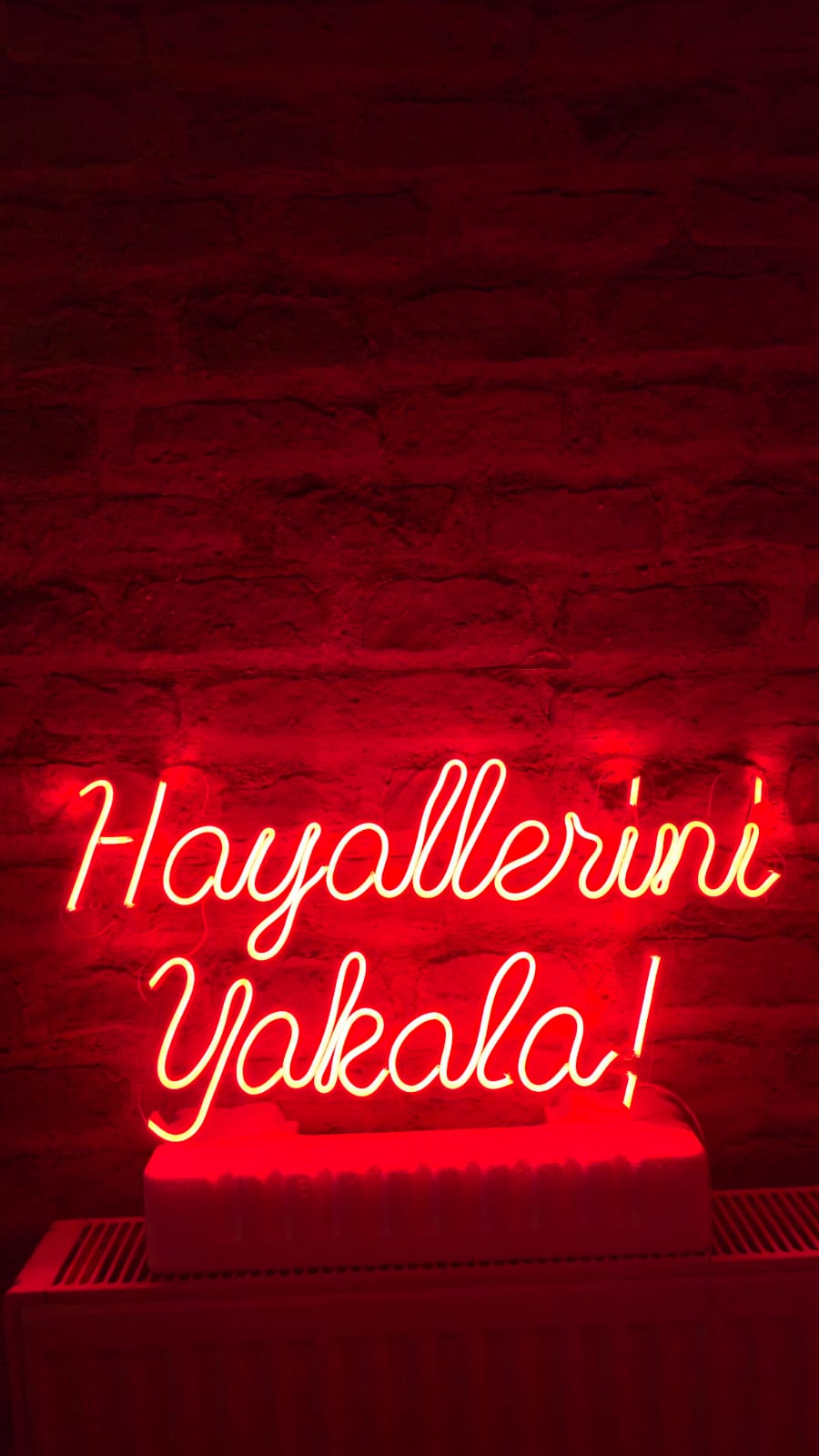 HAYALLERİNİ YAKALA Neon Tabela 50×30 cm, motivasyon dolu mesajı ile hedeflerine odaklanmak isteyenler için özel olarak tasarlanmıştır. Güçlü anlamı ve canlı neon ışığı sayesinde mekânda dikkat çekici ve ilham verici bir atmosfer oluşturur.