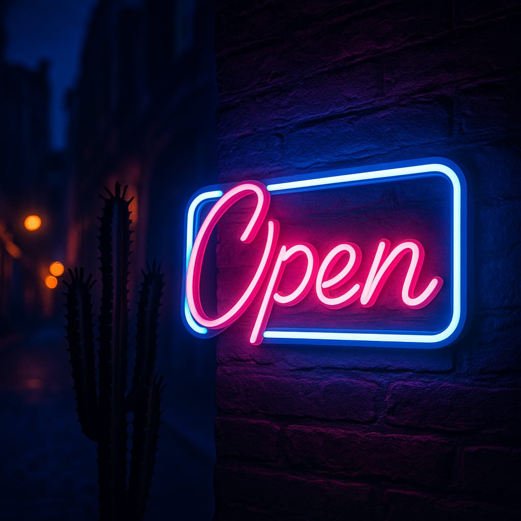 OPEN Neon Tabela 30×15 cm, kafe, restoran, berber, kuaför, mağaza ve tüm ticari işletmeler için ideal bir ışıklı tabela çözümüdür. Kompakt ölçüsü sayesinde cam ve vitrin alanlarında rahatlıkla kullanılırken, neon LED ışığı ile uzaktan bile kolayca fark edilir.