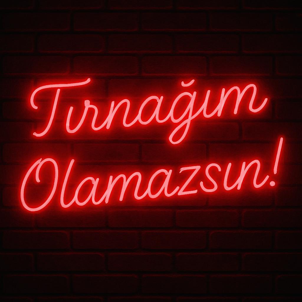 TIRNAĞIM OLAMAZSIN Neon Tabela 50×50 cm, cesur duruşu ve mizahi ifadesiyle dikkat çekmek isteyenler için özel olarak tasarlanmıştır. Sosyal medyada popüler olan bu iddialı slogan, neon ışığın enerjisiyle birleşerek mekânda güçlü bir etki yaratır.