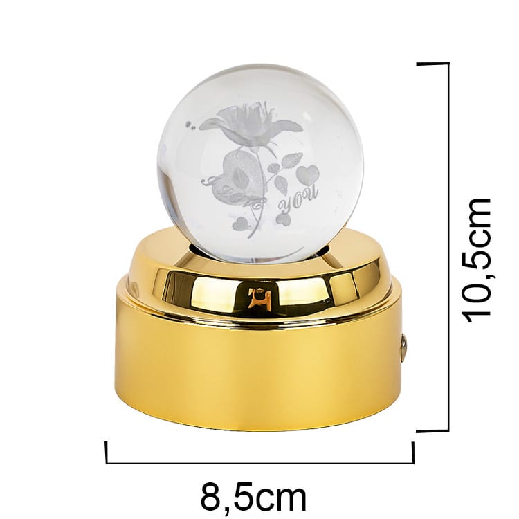• 360 derece dönen, led ışıklı kristal cam küreyle romantik bir atmosfer oluşturun.