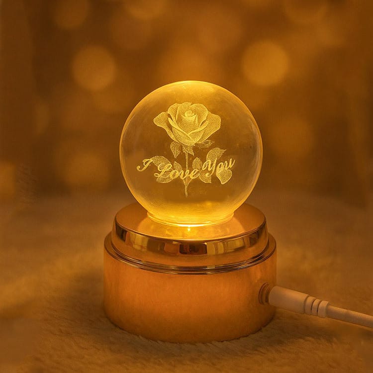 Romantizmi ve zarafeti bir araya getiren bu özel gece lambası, içindeki “I Love You” yazılı kristal küresiyle büyüleyici bir atmosfer yaratır. 360 derece dönebilme özelliği sayesinde ışığı her açıdan yansıtır ve bulunduğu ortama benzersiz bir ambiyans katar.